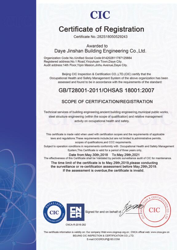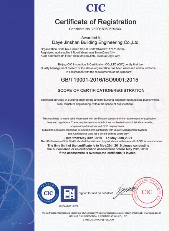 大冶金山建筑工程有限公司是一家專業(yè)從事建筑安裝總承包、園林古建筑、園林綠化景觀工程、文物修繕、市政道路工程、鋼結構工程等綜合型施工企業(yè),公司具有資本投資運營合作實力。